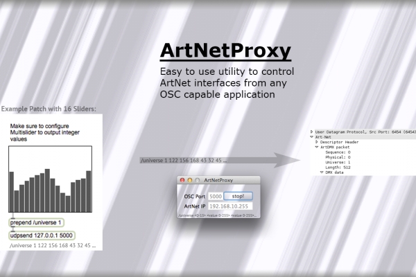 Applikation, um von Anwendungen, die das OSC-Protokoll unterstützen, Lichtsteuerungen über ArtNet ansteuern zu können.