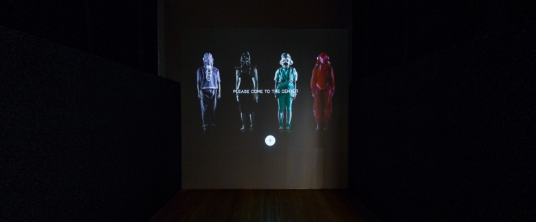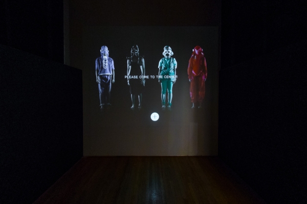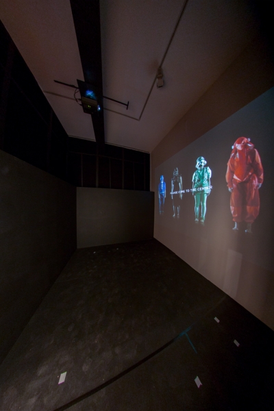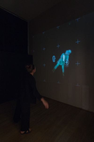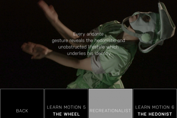 Interaktive Installation der Arbeit "Indivicracy - Dance of the Peregrine" von Alexa Pollmann, in der Besucher die Besucher dazu eingeladen werden, den Nationaltanz der fiktiven Staatsform zu erlernen.