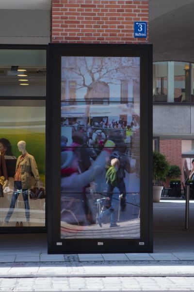 Sensorgesteuerte Video-Installation von Peter Weibel, gezeigt in der Maffeistr. 3, München, von 06. Juni bis Ende September 2013.