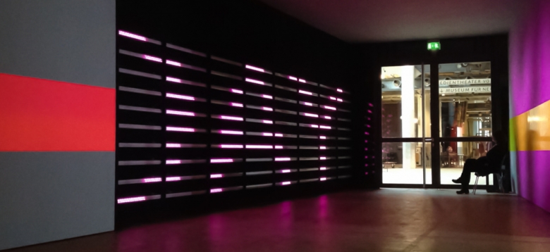 Bespielung der LED-Wand im Eingangsbereich zum ZKM | MedienMuseum für die Ausstellungen "Move On Asia" und "Babel World"