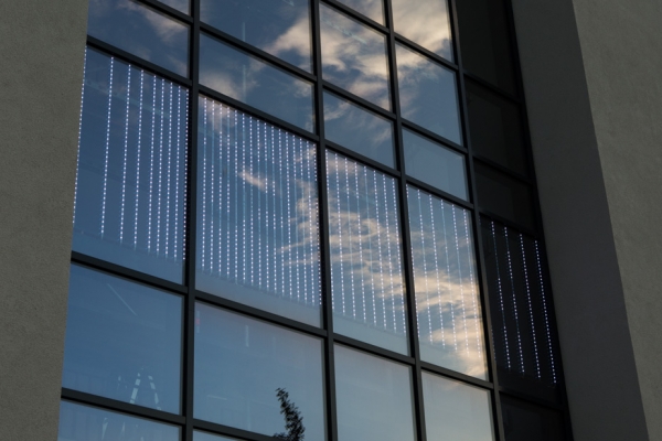 Die Medienfassade, die anlässlich der Ausstellung 'Moving Types - Lettern in Bewegung' an der Fassade der Alten Post installiert wurde, ist eine interaktive LED-Installation, die von Besuchern per SMS mitgestaltet werden kann.